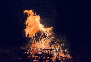 Tradition trifft Muskelkraft – der Selliner Tannenbaum-Weitwurf mit anschließenden Feuer.