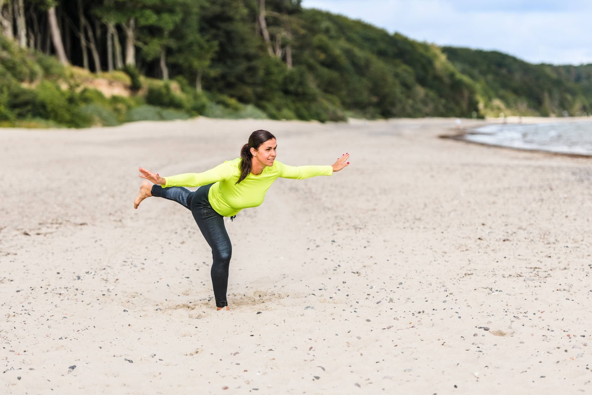 Die Frau hat Power – in jeder Hinsicht. Beim Personal Training am Ostseestrand zeigt Anita Heß ihren Kunden, wie sie im Urlaub fit werden für den Alltag zuhause. Und dabei auch noch Spaß haben.