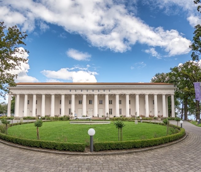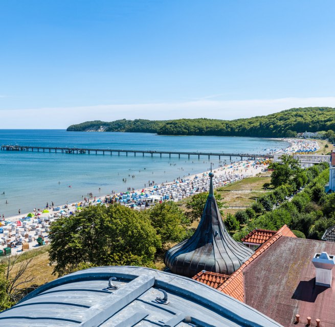 Im größten Seebad der Insel stehen prächtige Villen in friedlicher Koexistenz zu den skulpturalen Schalenbeton-Bauten des visionären Binzer Landbaumeisters Ulrich Müther. Neben Badeurlaubern zieht es Architekturinteressierte in den von Geschichte und Moderne geprägten Badeort. Hier lassen sich unter anderem der kultige, an ein UFO erinnernde Rettungsturm Müthers und die denkmalgeschützte Villa „Undine“ bewundern.
