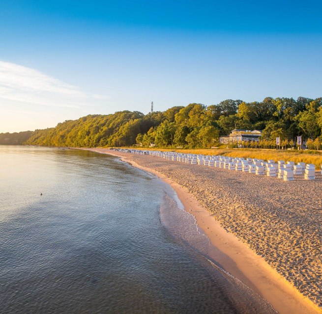 Flache Buddelstrände zum Burgenbauen, Muscheln sammeln und Drachensteigenlassen – abgeschieden, aber easy mit dem Rad zu erreichen oder direkt an der Seebrücke mit Fischbrötchen, Pommes, Eis und Drinks für die kleinen und großen Badepausen.