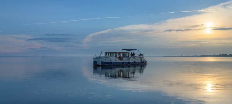 Läuft, oder? Silke strahlt. Es ist ihr erstes Mal am Steuer eines Hausbootes, doch sie hält das Ruder lässig in der Linken, hat den Gashebel voll nach oben geschoben und steuert das zehn Meter lange Boot mit der Grandezza einer erfahrenen Hochseekapitänin in die stillen, flaschengrünen Wasser der Müritz hinein. „Aus’m Weg!“, ruft die 55-Jährige fröhlich, als ein Ruderboot mit Angler auftaucht, weicht dann aber doch lieber selbst in großem Bogen aus und tuckert in einen langgestreckten Kanal hinein. Lichtes Grün wächst zu beiden Seiten des Wassers, Birken strecken ihre Äste in den Himmel, Seerosen entfalten ihr pinkfarbenes Innenleben. Herrlich ist es auf dem Wasser. Und ist es nicht einfach fantastisch, dass man zum Führen eines Hausbootes weder Vorkenntnisse noch einen Bootsführerschein braucht?