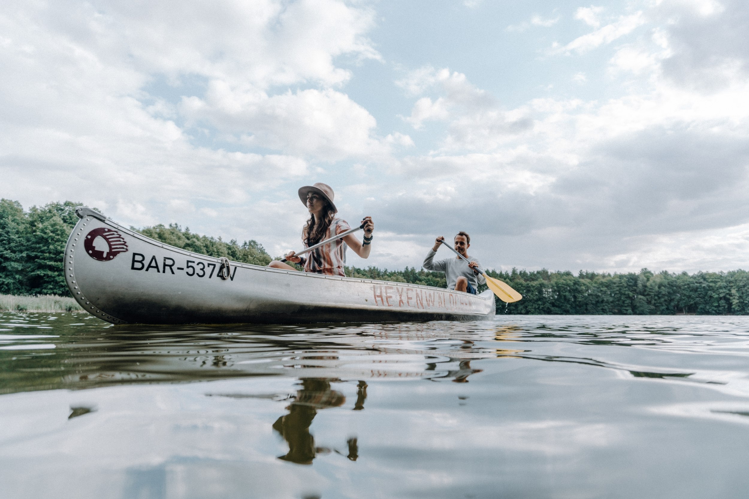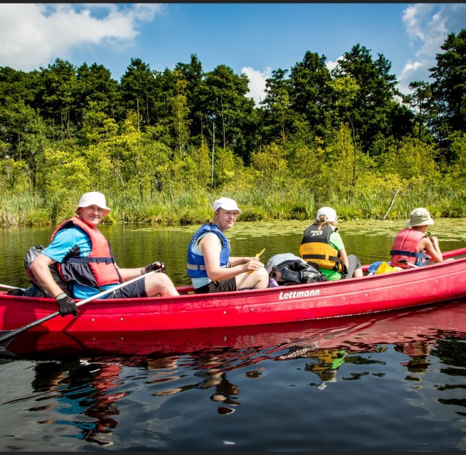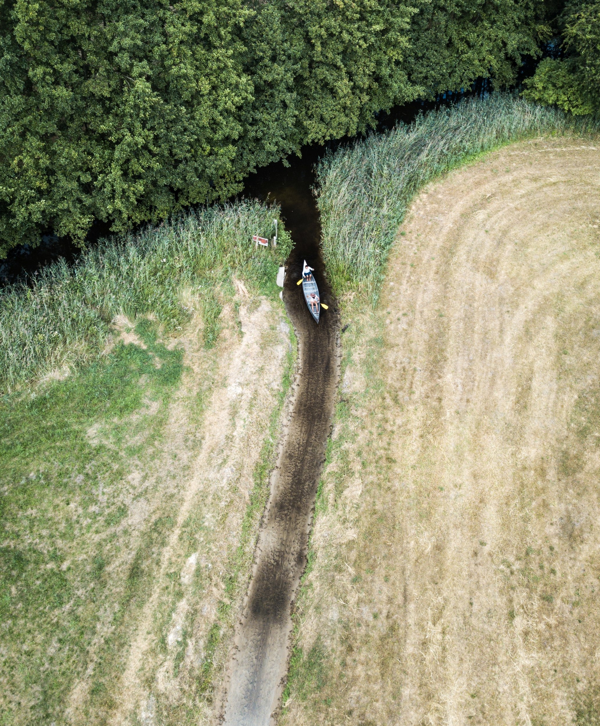 Der Start unserer Tour ist der Naturcampingplatz „Bolter Kanal“. Nach einem leckeren Porridge packen wir unsere wasserdichten Packsäcke ins Kanu und beginnen unseren siebentägigen Trip. Es ist 9 Uhr 30 und bereits jetzt sind es 22 Grad. Heute soll es einer der heißesten Tage des Jahres werden und wir freuen uns, dass wir stets die Option haben ins kühle Nass zu springen. Diese Möglichkeit nutzen wir bereits eine Stunde später und ganz ehrlich: es ist eher ein lauwarmes Nass. Doch darüber wollen wir uns wirklich nicht beschweren.