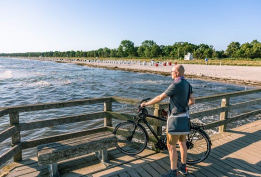 Am besten beginnt man einen Urlaubstag mit einem Kaffee in der Hand auf der Seebrücke von Boltenhagen, mit Panoramaaussicht aufs Meer. Auch weil man von hier einen herrlichen Blick auf den Strand des Seeheilbads und seine bizarre Steilküste hat. Doch dann ist es an der Zeit, das Fahrrad zu besteigen, um die Wismarer Bucht noch ein bisschen besser kennenzulernen. Durch den ursprünglichen Klützer Winkel geht’s erstmal nach Zierow, das zwischen Feldern und Wiesen an einem Küstenabschnitt an der Eggers Wiek liegt. Der Naturstrand dort eignet sich für ein schönes Erfrischungsbad.