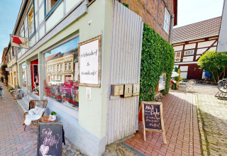 Café Faltenrock is gevestigd in een bijna volledig bewaard gebleven boerderij en biedt individuele cadeau-ideeën.