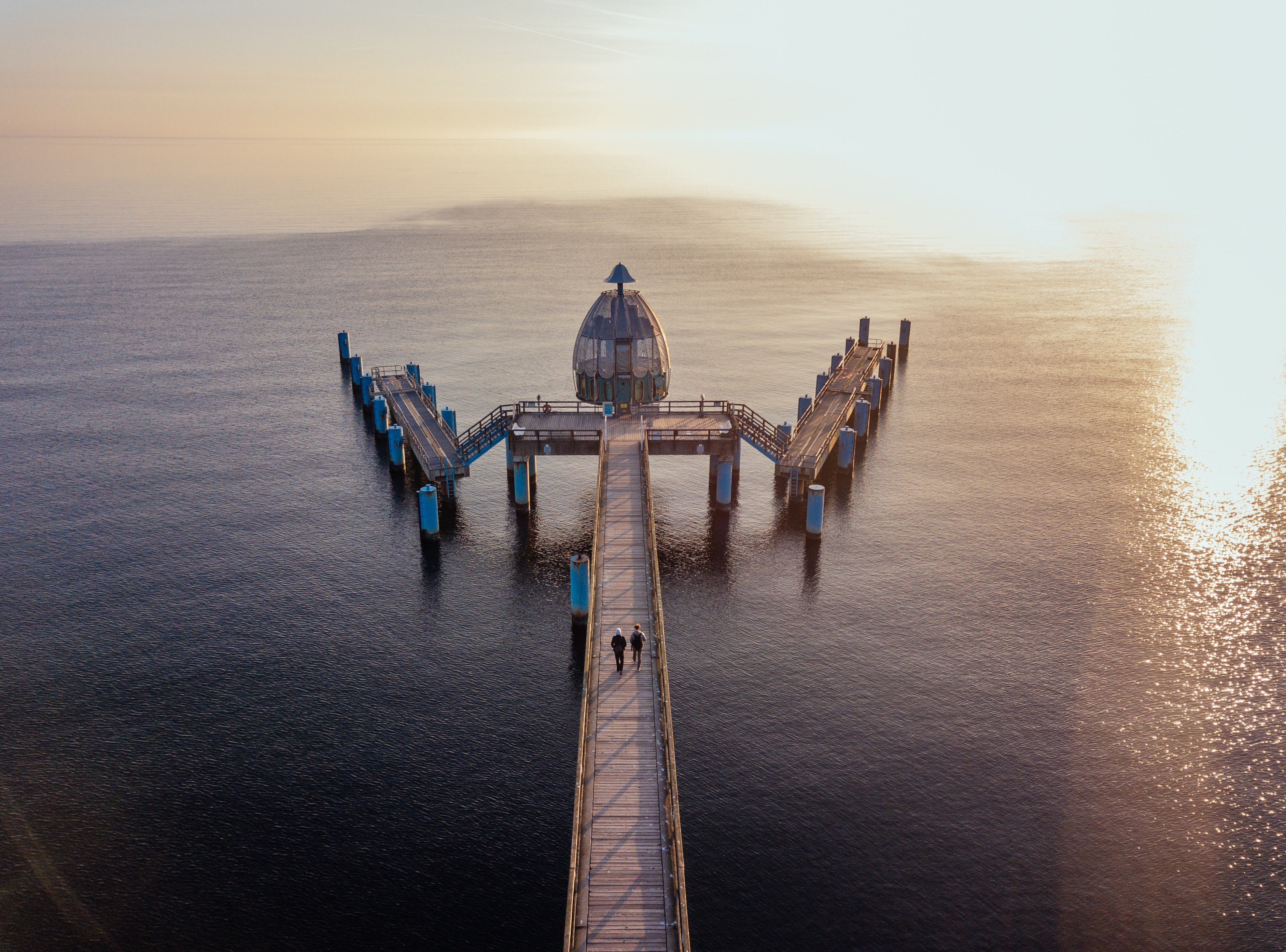 De Selliner Seebrücke is een van de beroemdste bezienswaardigheden in Rügen. Het is vooral magisch bij zonsopgang, wanneer de Baltische Zee in een gouden gloed straalt - een moment dat je lang bij zal blijven. Fietsen door de regio