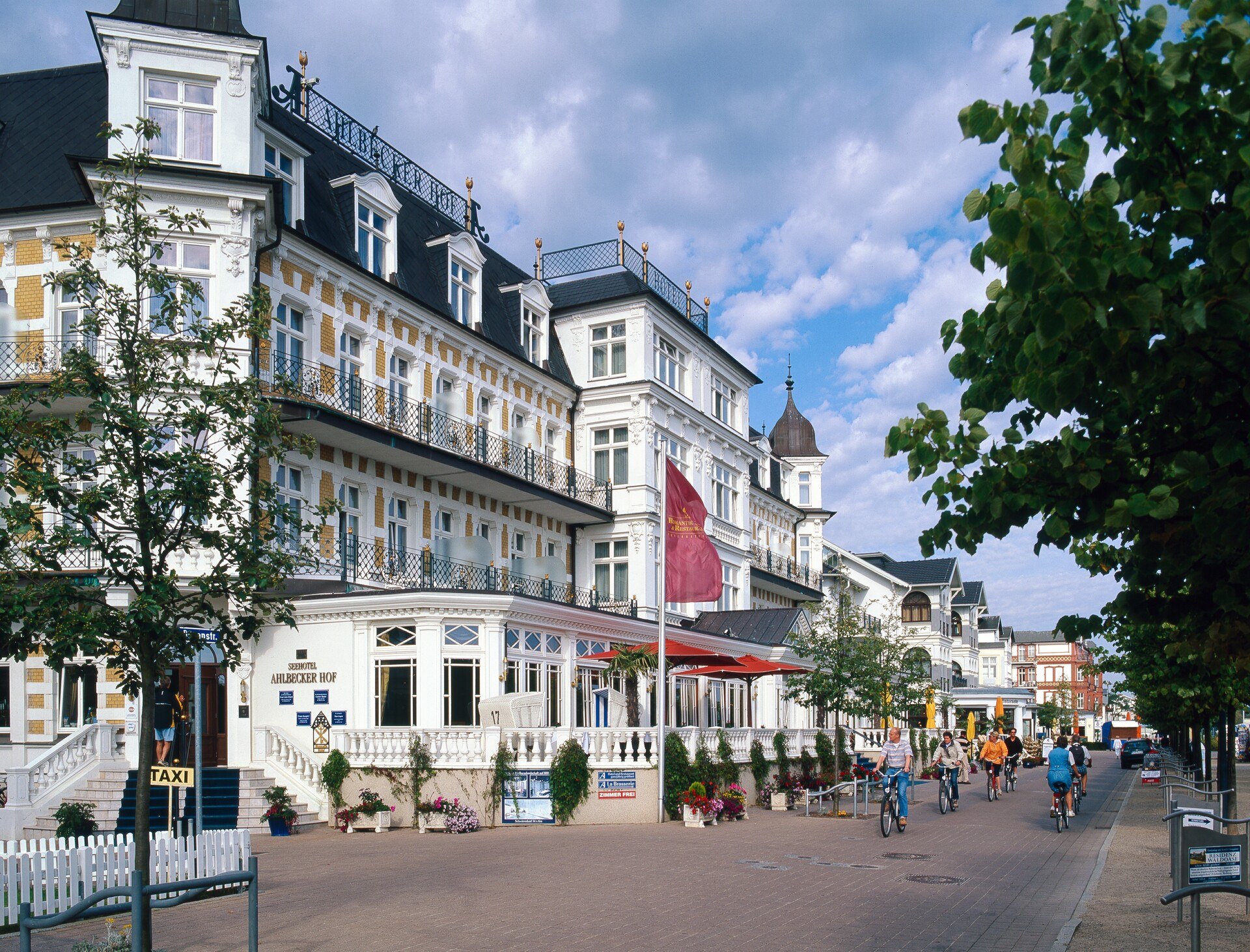 Ahlbeck is ook de thuisbasis van het „Ahlbecker Hof“ gebouwd in 1890 en het eerste vijfsterrenhotel in het Kaiserbäder. In 1905 was keizer Frans Jozef I van Oostenrijk hier te gast en reisde elke dag in een hansom cabine naar de katholieke kerk in Swinemünde. In 2006 verbleef koningin Silvia van Zweden hier als eregast op het Usedom Music Festival, terwijl dit jaar de focus op Zweden lag.