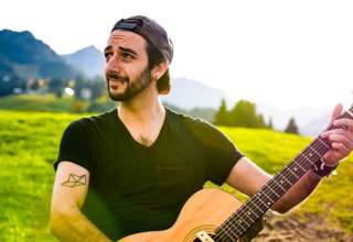 Concert met Aljosha Konter - met zijn gitaar in ware singer-songwriterstijl.