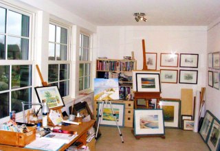 Nieuwe en oude olieverfschilderijen en potloodtekeningen, alledaagse taferelen en stillevens worden tentoongesteld in de galerie op de binnenplaats.