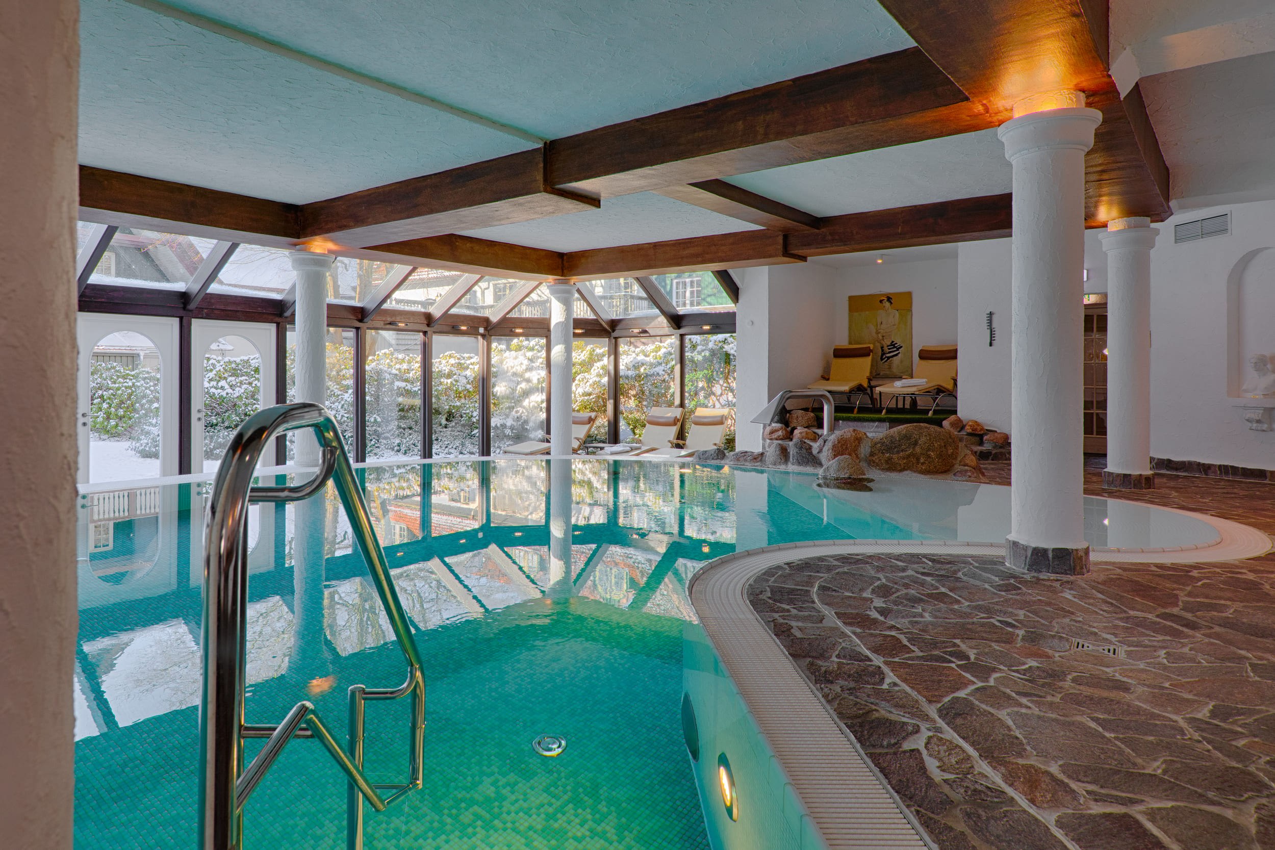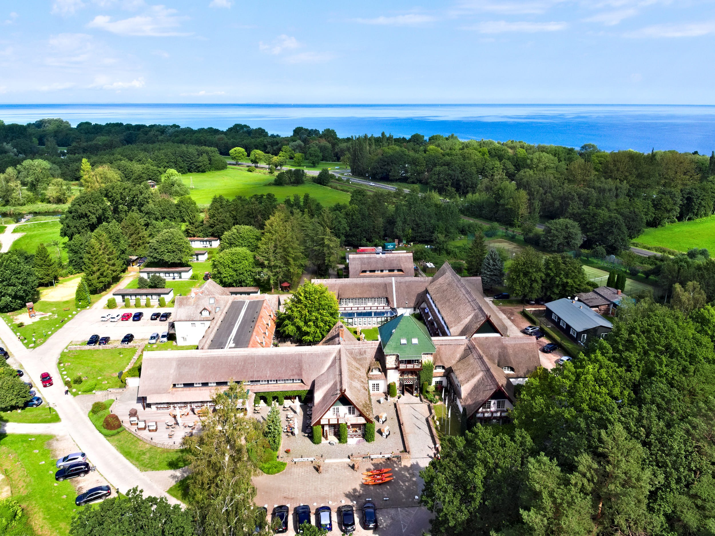 Usedom, ein Fleckchen Erde zum Wohlfühlen, zu jeder Jahreszeit. Umgeben von Wald, Wasser und Wiesen bietet das 4-Sterne-Hotel Forsthaus Damerow die ideale Lage für Ihre Auszeit. Entspannen Sie im TAO-Wellnessbereich, entschleunigen Sie beim Spaziergang am Achterwasser und genießen Sie die klare Ostseeluft am ca. 800 Meter entfernten Strand Koserows. Erkunden Sie die einzigartige Natur Usedoms mit dem Fahrrad oder dem Kajak vom hauseigenen Steg aus. Neben geführten Touren aus unserem Grenzenlos Aktiv-Programm bieten wir auch einen Verleih an. Lassen Sie die Seele baumeln und genießen Sie Ihren Urlaub auf Usedom im Forsthaus Damerow!