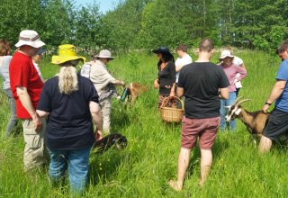 Freitags um 17 Uhr "Auf Kräutertour mit Ziegen": Wanderung mit den Ziegen, Kräuter und deren Wirkung und Verwendung kennenlernen, sammeln und entspannen, ca. 1,5 Stunden, 15 € p.P.