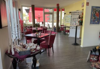 - Im Bistro sind keine unterfahrbaren Tische vorhanden (Maximalhöhe 80 cm, Unterfahrbarkeit in einer Höhe von 67 cm und einer Tiefe von 30 cm).