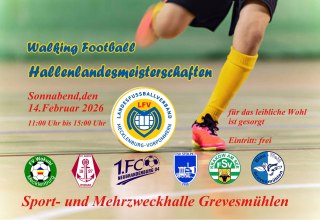 Der SV Blau-Weiß Grevesmühlen Abteilung Fußball wurde vom LFV Mecklenburg-Vorpommern mit der Ausrichtung der 1. Hallenmeisterschaft im Walking Football betraut. Am Sonnabend, den 14. Februar 2026 findet der Wettkampf von 11:00 Uhr bis 15:00 Uhr in der Sport- und Mehrzweckhalle am Ploggenseering statt.