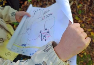 Mit dem Team der Umweltbildung geht es Schatzsuche in der Natur.