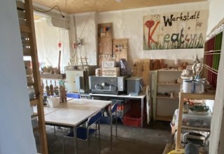 Keramik und Glasfusingarbeiten für Haus, Hof und Garten und für die Seele. Ganzjährig finden hier Workshops für Töpfern, Glasfusing und Korbflechten statt.