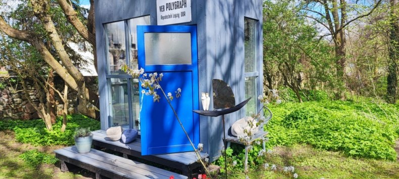 Ausstellungsort ist ein ehemaliger Lebensmittelladen. Präsentiert werden die bemalten Leinwände in Form eines begehbaren Hauses.