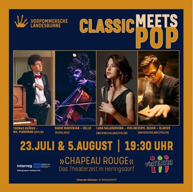 Deutsch-polnischer Kultursommer im Rahmen des Theaternetzwerkes viaTEATRI mit internationalen Musiker:innen aus Polen, Deutschland, Belarus und Russland: Vivalis Project mit Luba Saladukhina (Violine), Kiryl Keduk (Klavier) und Gagik und Thomas Krüger "Mr.Pianoman"