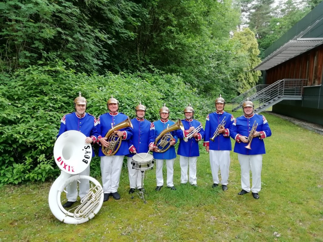 Die Kapelle mit dem gewissen Charme des letzten Jahrhunderts wird Sie mit Blasmusik unter der Leitung von Kurt Witt begeistern. In ihren schicken blauen original-getreuen Kürassier-Uniformen spielen die leidenschaftlichen Musiker traditionelle Marschmusik und beliebte, auch modern arrangierte Titel, u.a. Eigenkompositionen vom erfolgreichen Solotrompeter Kurt Witt.