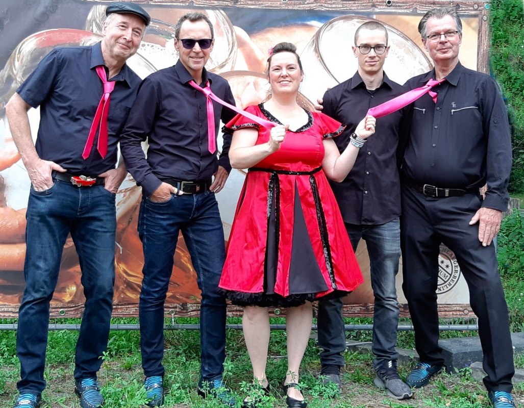 Im dazu passenden Outfit, Petticoat und Lederjacke natürlich, wird alles live gespielt. Playback und Halbplayback sind für die Velvet Cats Fremdwörter.