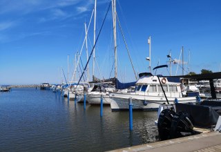 Der Segel- und Yachthafen Greifswald-Wieck bietet Liegeplätze für Segel- und Fahrgastschiffe.