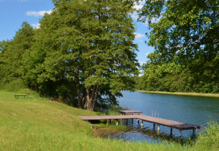 Der Campingplatz liegt direkt am Wasser inmitten unberührter Natur und verfügt über einen außergewöhnlichen breiten Sandstrand, perfekt zum Baden und Sonnen - und zum Genießen der Abendstunden, die direkt vor einem im See unterzugehen scheint. Sportbegeisterte können sich auf dem Volleyballplatz fit halten, während sich die Kinder auf dem Spielplatz austoben. Die Chefin sorgt für ein abwechslungsreiches Programm mit Bingo, Fischräuchern oder Grillabenden.