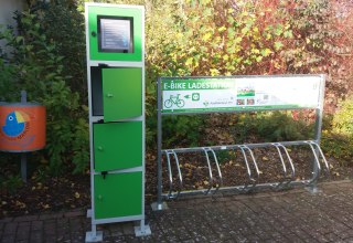 Fahrradständer und 4 Ladeboxen mit Platz für je 2 Akkus - kostenlose Nutzung