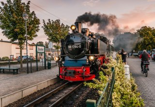 Der Haltepunkt des "Rasenden Roland" mitten im Ostseebad Baabe.