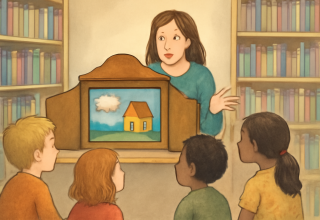 Es öffnen sich die Türen des Kamishibai Erzähltheaters. Es lesen und erzählen unsere Lesepaten.