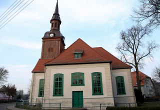 Der Grundriss der 1741 errichteten Kirche hat die Form eines gleicharmigen griechischen Kreuzes, was in dieser Gegend eine große Seltenheit darstellt. Die Fachwerkkonstruktion ist von Putz verdeckt.