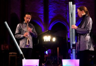 Das Berliner Duo "Liquid Soul" präsentiert meditative Musik mit Wasserstichorgel, Aquarion, Sheng u.a. seltenen Instrumenten