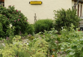 Eine Augenweide ist der Rosengarten. Gäste können hier Park- und Ramblerrosen von bis zu sechs Metern Höhe bestaunen.