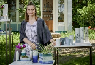 Heiner Drews stellt Schalen, Skulpturen und Schmuck her. Die Hauptmaterialien sind heimische Hölzer, auch Stahl, Glas und Stein lässt er mit seinen Kunstwerken verschmelzen.