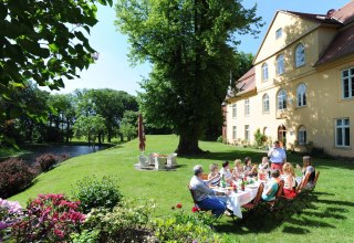 Anfang des 18.Jahrhunderts im Stil des Klassizismus für die Familie von Hahn erbaut, wird das Schloss heute als Hotel genutzt.